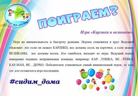 Данный раздел создан для того, чтобы сделать дни дома интересными, познавательными, обучающими и развивающими!!! Вы всегда можете связаться со мной, сообщить о самочувствии и получить рекомендации по использованию материалов, которые я выкладываю для вас и ваших детей в данном разделе.